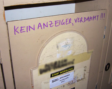 Oh nein, oh nein, oh nein: Bisher genügte ein Kleber auf dem Briefkasten, um den reichlich nutzlosen “Anzeiger” nicht regelmässig im Altpapier entsorgen zu müssen. Nun wird einem barsch mitgeteilt: Wenn der Anzeiger so extrem superwichtig sein soll – wieso war es denn bisher möglich, mit einem Kleber am Briefkasten den Anzeiger problemlos abzulehnen? ((Ergänzung: Das offizielle Verzichtsformular kann hier als PDF heruntergeladen und kostenlos …