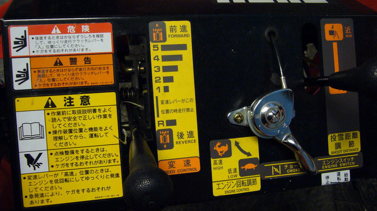 1. Interessant ist neben dem Schildchrottchen auch das Buch-Symbol: kann die Schneefräse aus Bücher vorlesen? Und tut sie auch Maniküren? Die beiden Bildchen mit dem Männchen sind sicher aus einem Jane-Fonda-Aerobic-Büchlein. Die Japaner sollten nicht alles unbesehen kopieren.