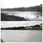 Vergleichsbilder aus der gleichen Woche 2025 und 1985 vom Rhein, “uf dr Pfalz” und vom Spalenberg:
