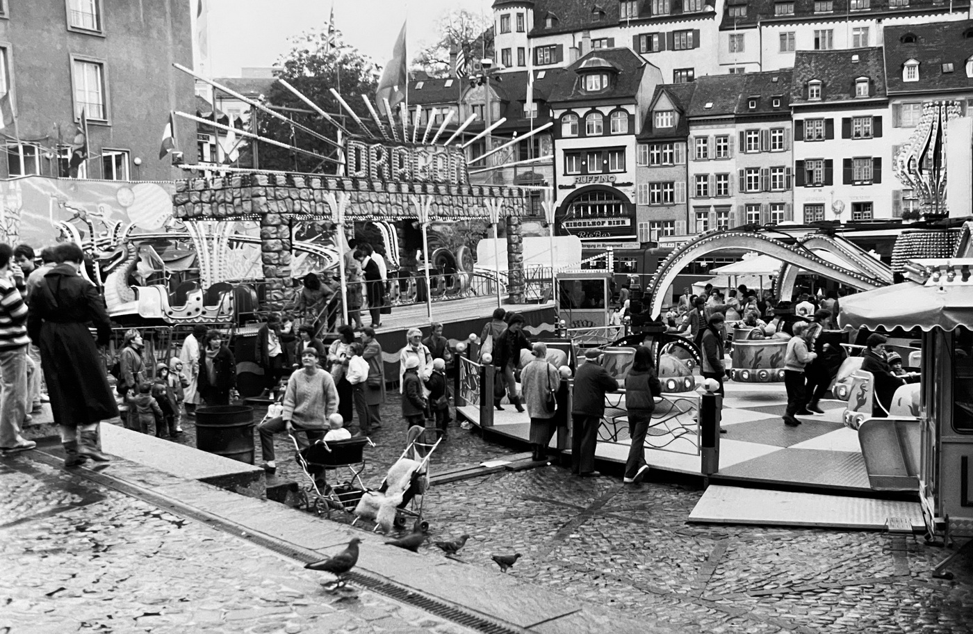 “Die Fahrt kostet 2.50 – viel zu teuer”, schrieb ich 1985. Wenn ich gewusst hätte, dass das Riesenrad vierzig Jahre später 8 Franken kosten würde… viel hat sich ansonsten schaustellerisch nicht geändert auf dem Barfüsser- und Münsterplatz. Die Bahnen sind moderner, aber können etwa das Gleiche wie damals.