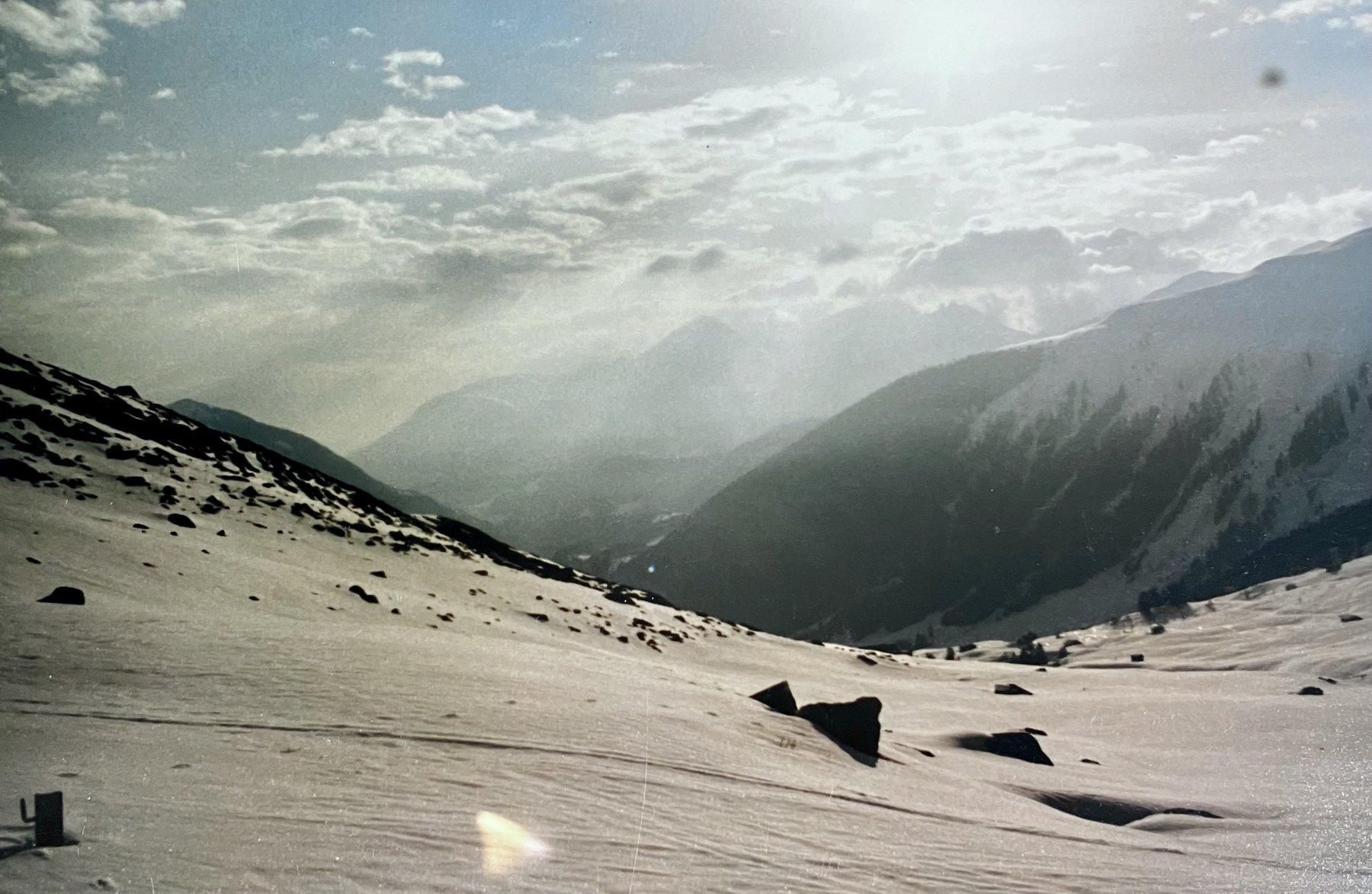 Ostern 1986 war sehr früh – Ende März. Der Winter war schneereich, dementsprechend genossen wir abgesehen vom perfekten Firn hochwinterliche Verhältnisse zwischen Mulinatsch und der Alp Culmatsch.