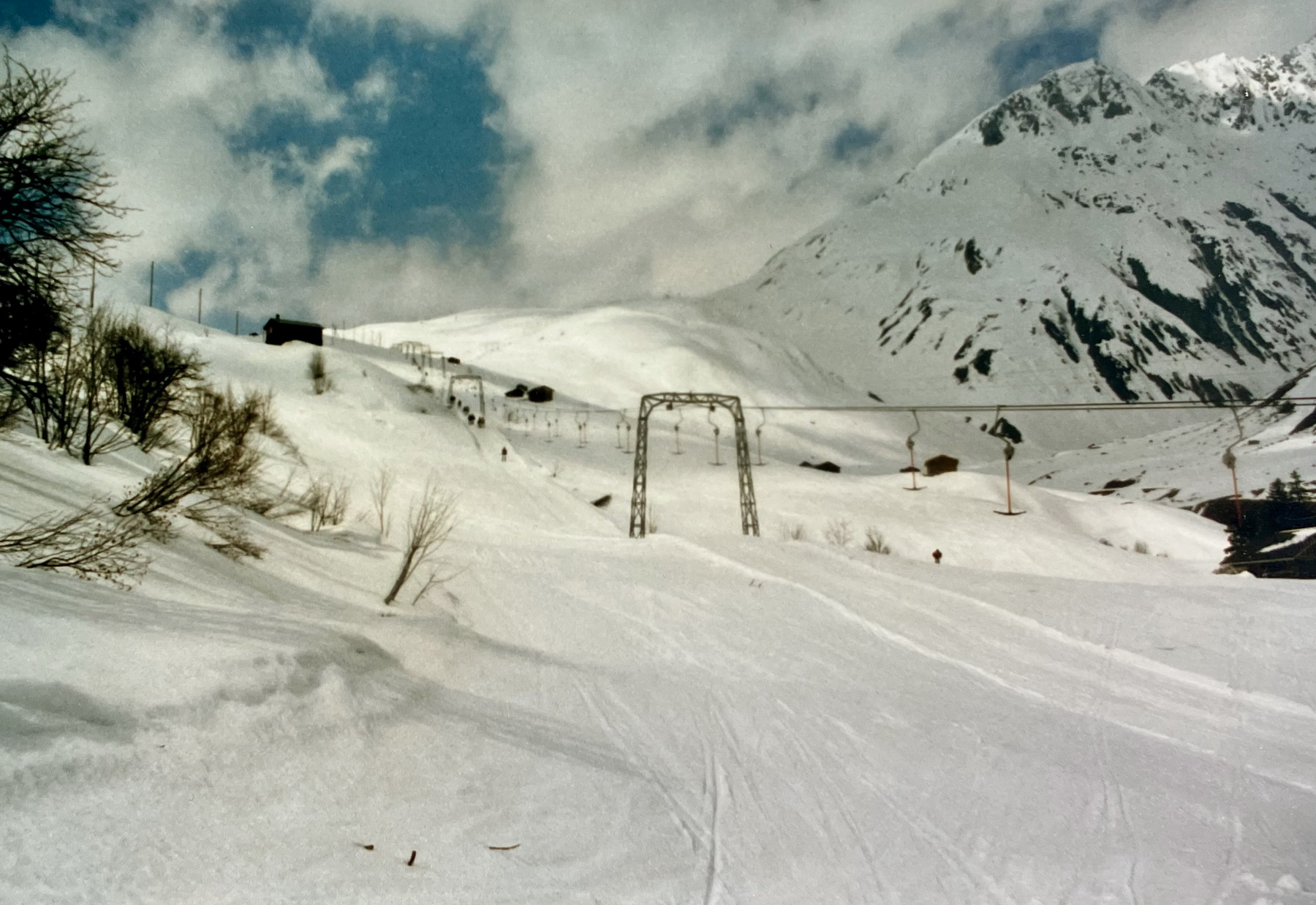 Mit der Kamera dokumentierten wir danach auch gleich das Skiegbiet Dieni-Milez – alle sichtbaren Anlagen (ausser Tegia Gronda) sind längst durch Sesselbahnen ersetzt worden, auch der legendäre steile Skilift “Val Val”.